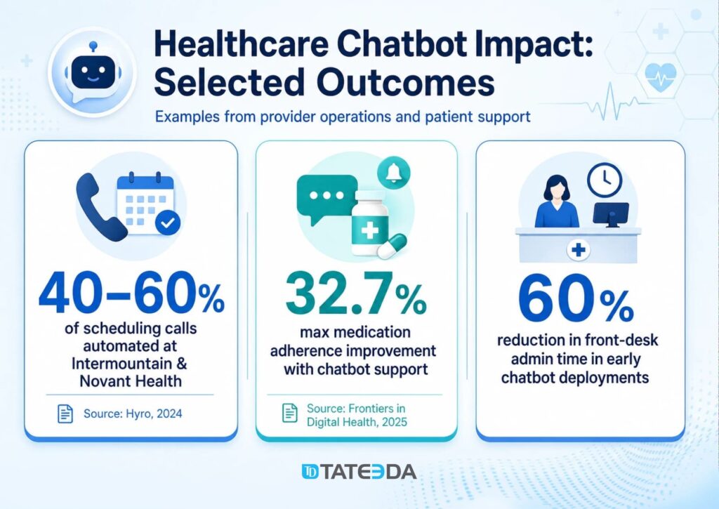 The two categories are complementary, not competing. A chatbot collects a patient’s symptom report; an agent processes that report against clinical criteria and schedules the appropriate follow-up. TATEEDA has covered the role of AI agents in healthcare and agentic AI trends in healthcare in depth. This article focuses on the conversational layer.