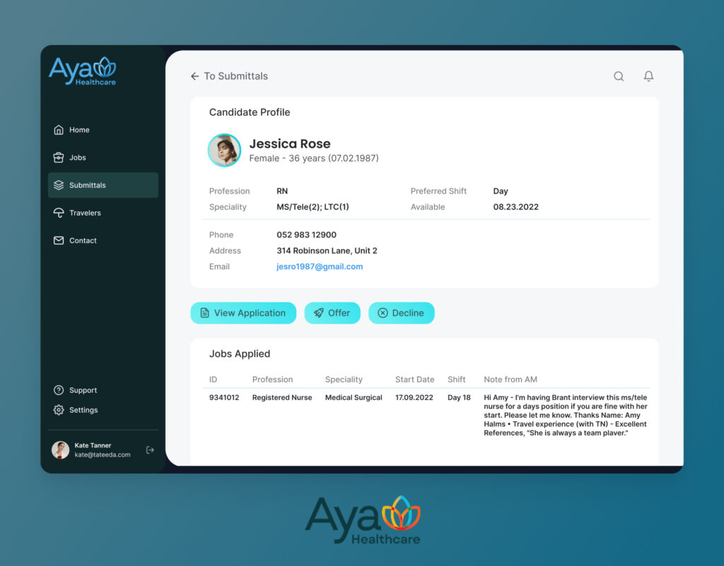 TATEEDA partnered with AYA Healthcare, one of the largest U.S. travel nurse agencies, to architect a multi-layer platform that spans patient and clinician portals, mobile apps, healthcare claim and payment integrations, and analytics. Our engineers implemented FHIR and HL7 data exchanges, X12 eligibility and claims flows (270/271, 837/835), and secure identity services using SSO and OAuth2. The result was a unified experience across scheduling, credentialing, timesheets, and billing that reduced manual touchpoints and created a clear engagement timeline for every user journey.
